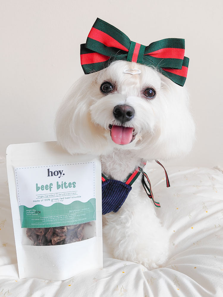 our beef bites treats are made from 100% grass-fed beef knuckle