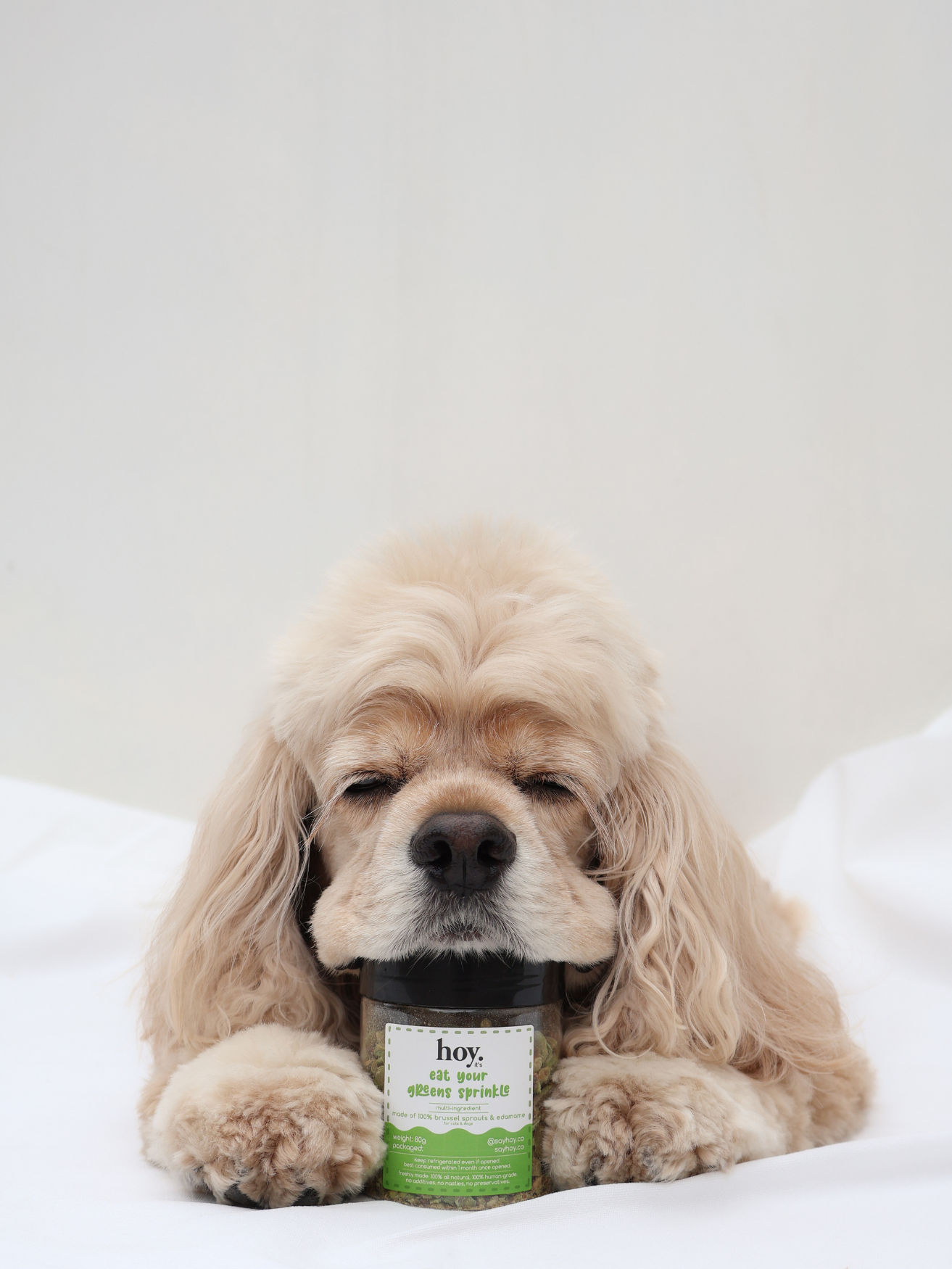 our eat your vegetables sprinkle is made 100% brussels sprouts & edamame. each bottle of sprinkle weighs 80g, comes sealed and with a wooden spoon