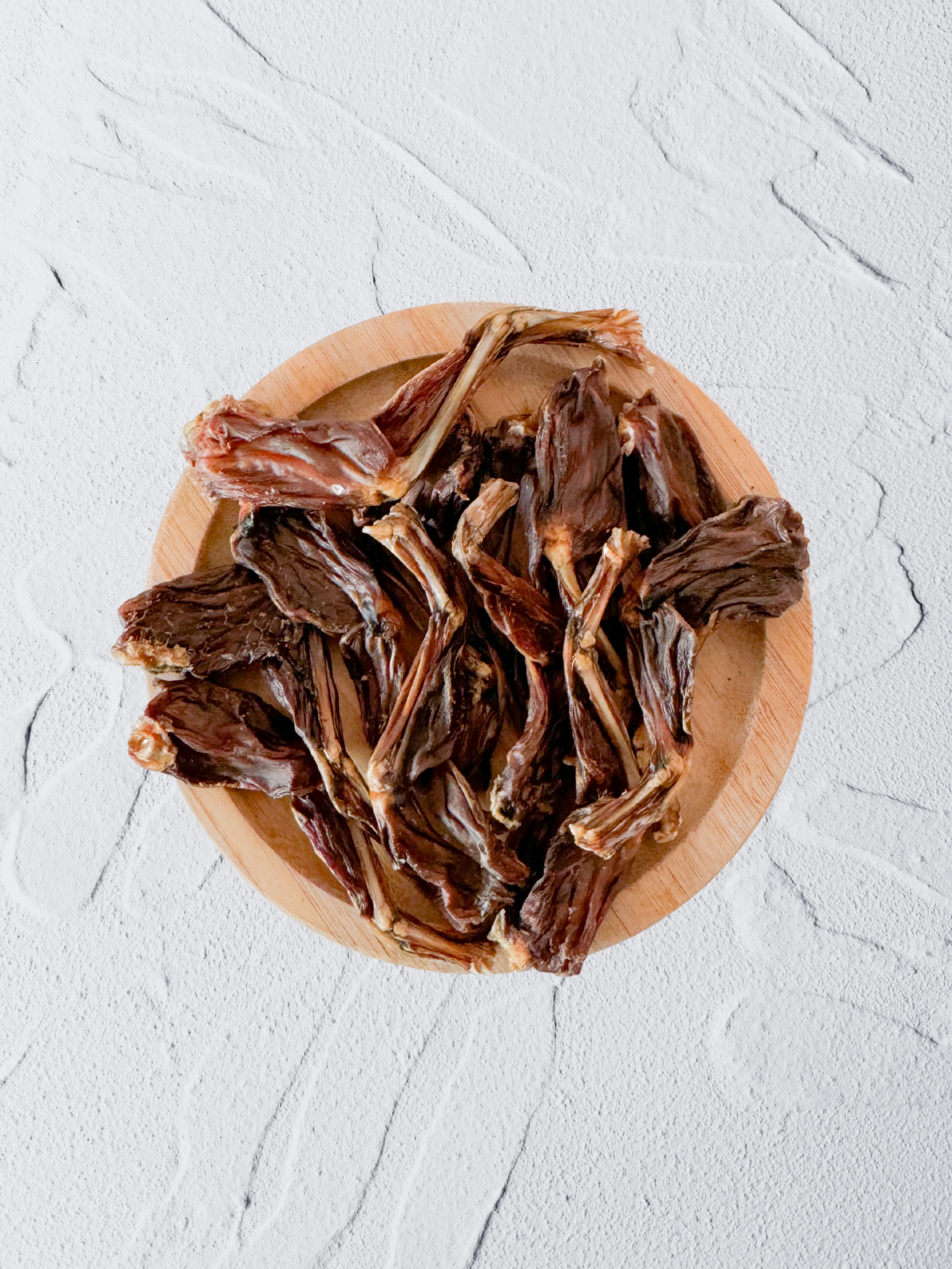 our frog drum chews are made from 100% locally reared frogs without the use of hormone growth promotants or antibiotics. approx. 5-6 frog drums per 30g