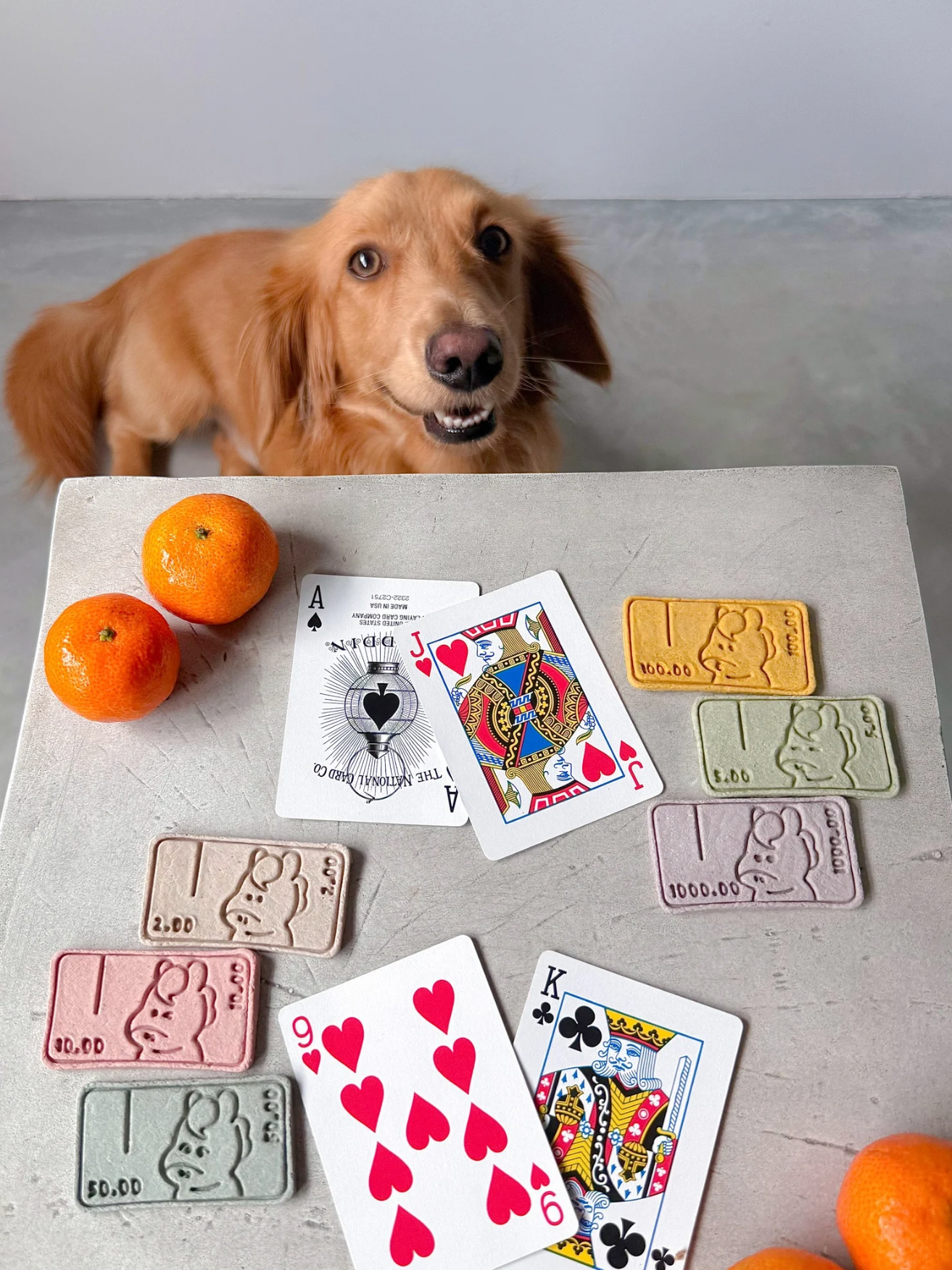 our lunar new year special - huat's up cookies. these cookies are made of meat and goat's milk. natural food coloring is used for colors. our huat's up cookie set are inspired by the singapore currency, with us designing our own hoy-rrency molds