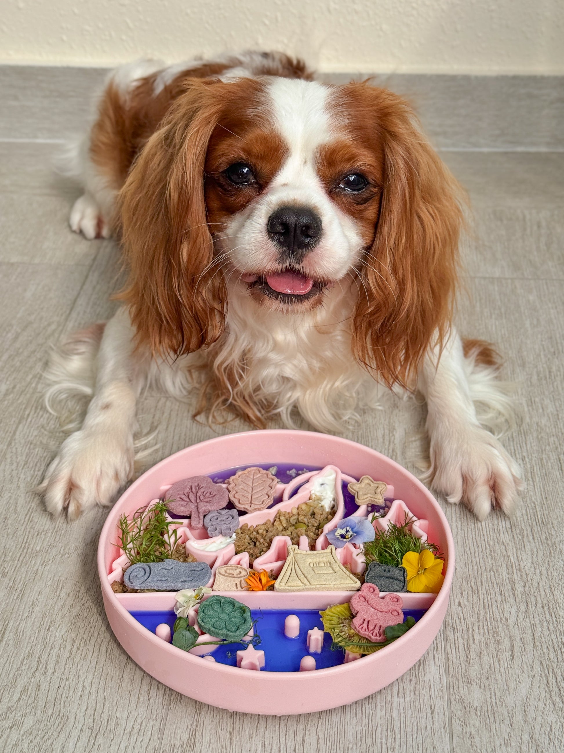 the bailey slow feeder. a slow feeder aids in slowing down eating thus aiding in digestion and reduces bloating, gas and vomiting. with the different textures, holes and sizes, it adds mental stimulation, helping your pet to better regulate their emotions, reducing anxiety, stress & boredom