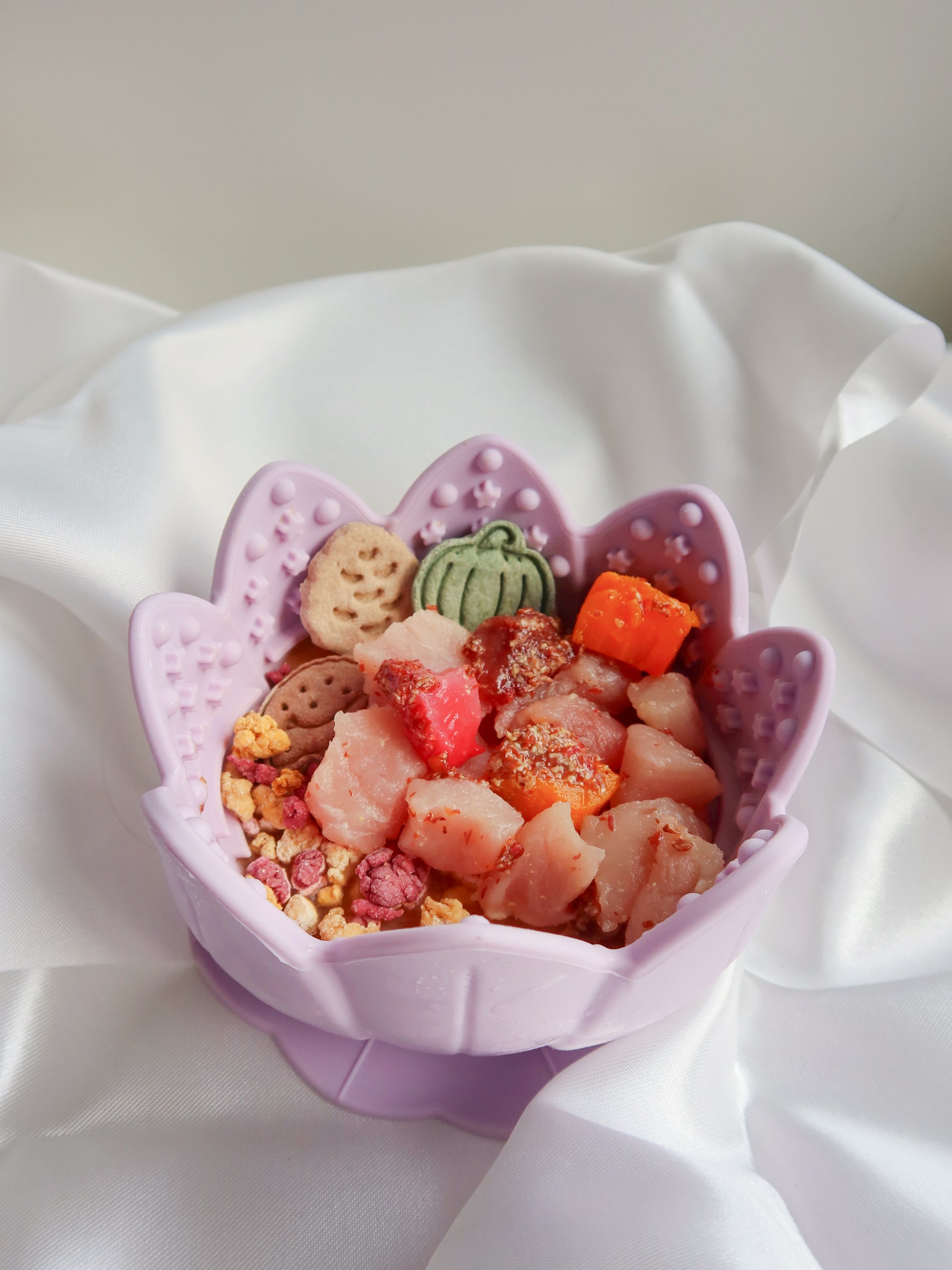 the bossam feeder. this feeder has gentle bumps and soothing grooves that aid in mental stimulation, helping your pet to better regulate their emotions, reducing anxiety, stress & boredom