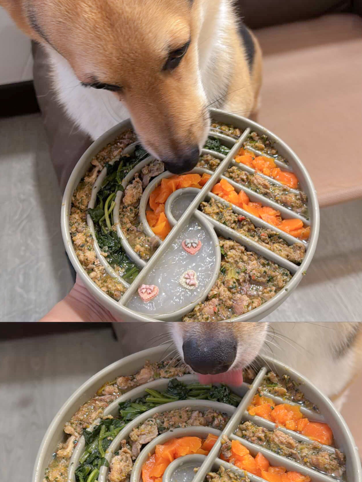 the dragon slow feeder. a slow feeder aids in slowing down eating thus aiding in digestion and reduces bloating, gas and vomiting. with the different textures, holes and sizes, it adds mental stimulation, helping your pet to better regulate their emotions, reducing anxiety, stress & boredom