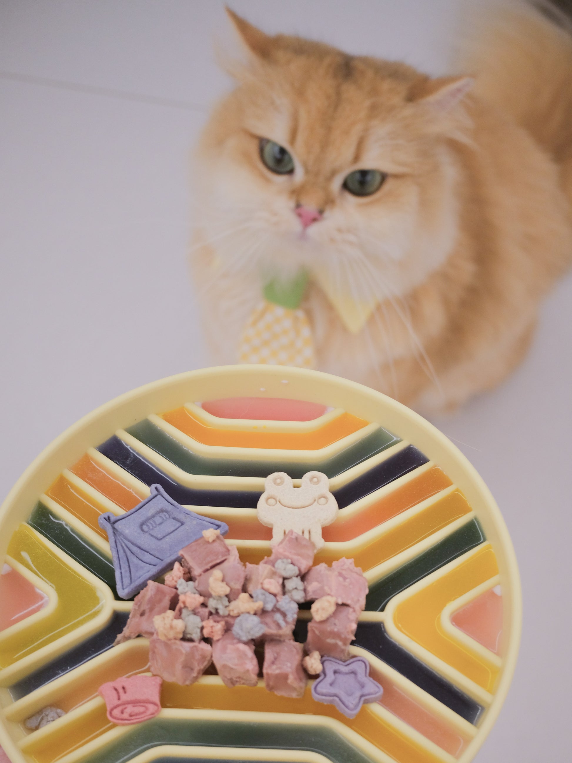 the udon slow feeder. a slow feeder aids in slowing down eating thus aiding in digestion and reduces bloating, gas and vomiting. with the different textures, holes and sizes, it adds mental stimulation, helping your pet to better regulate their emotions, reducing anxiety, stress & boredom