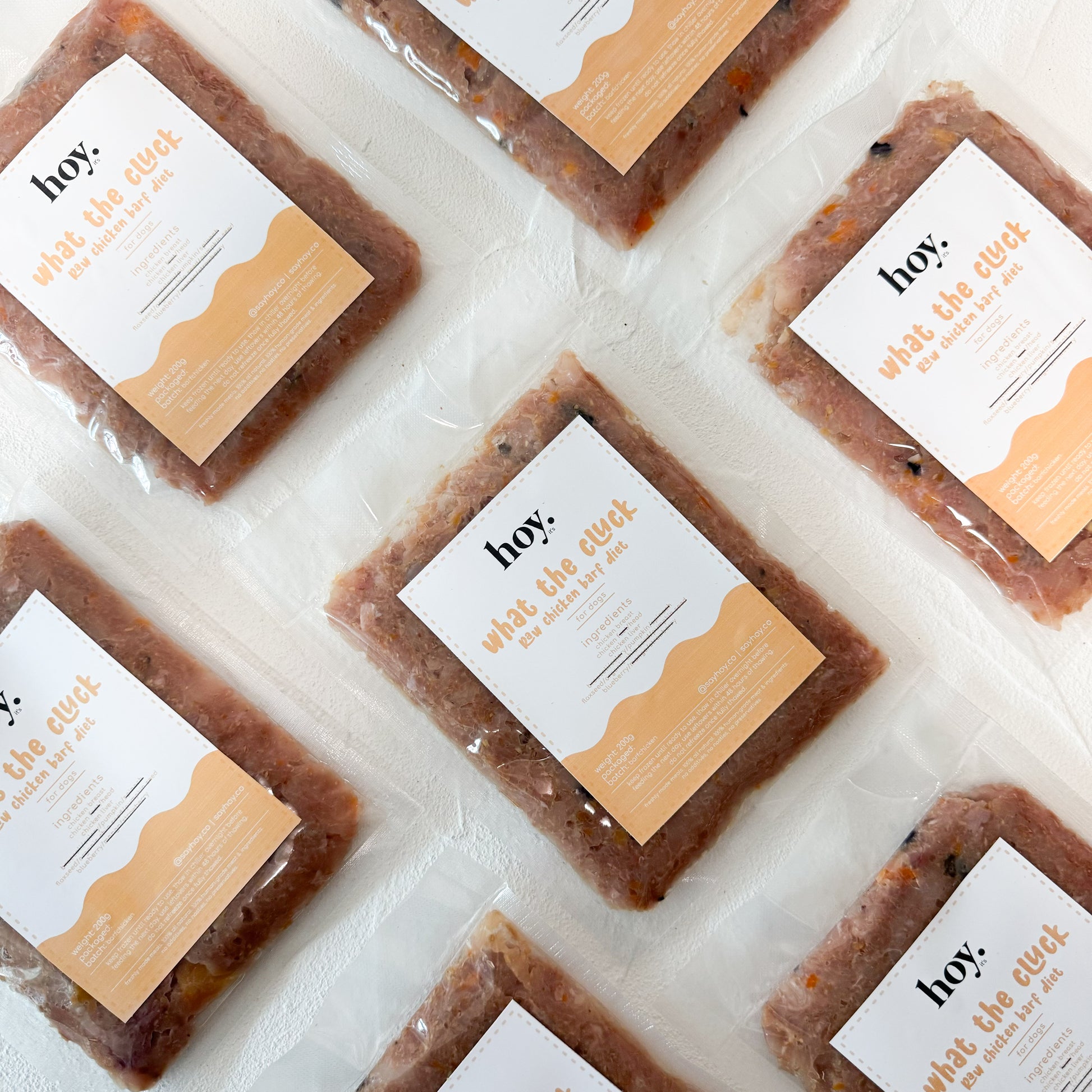 hoy's what the cluck raw barf diet are vacuumed & pre-packed in 200g portions